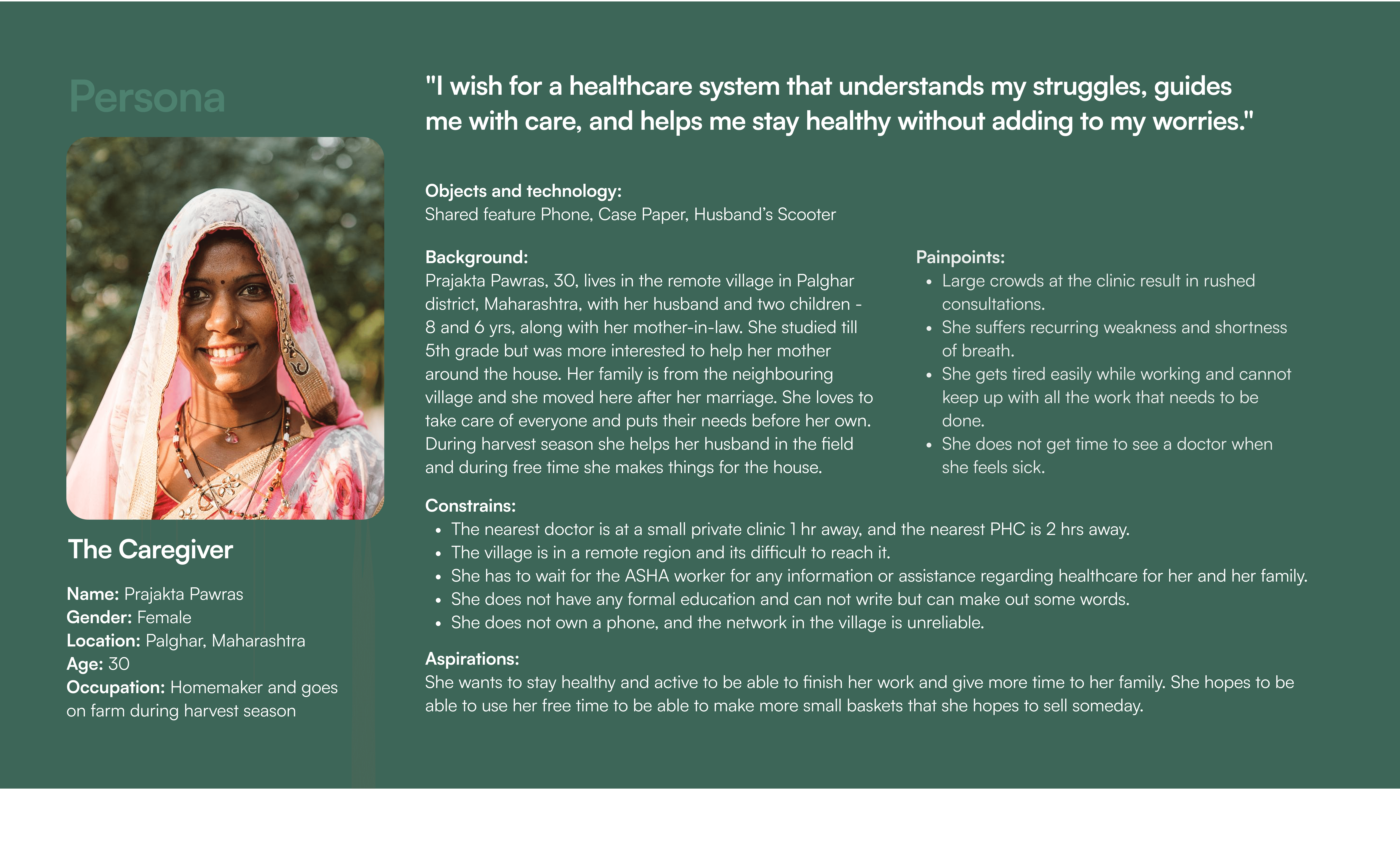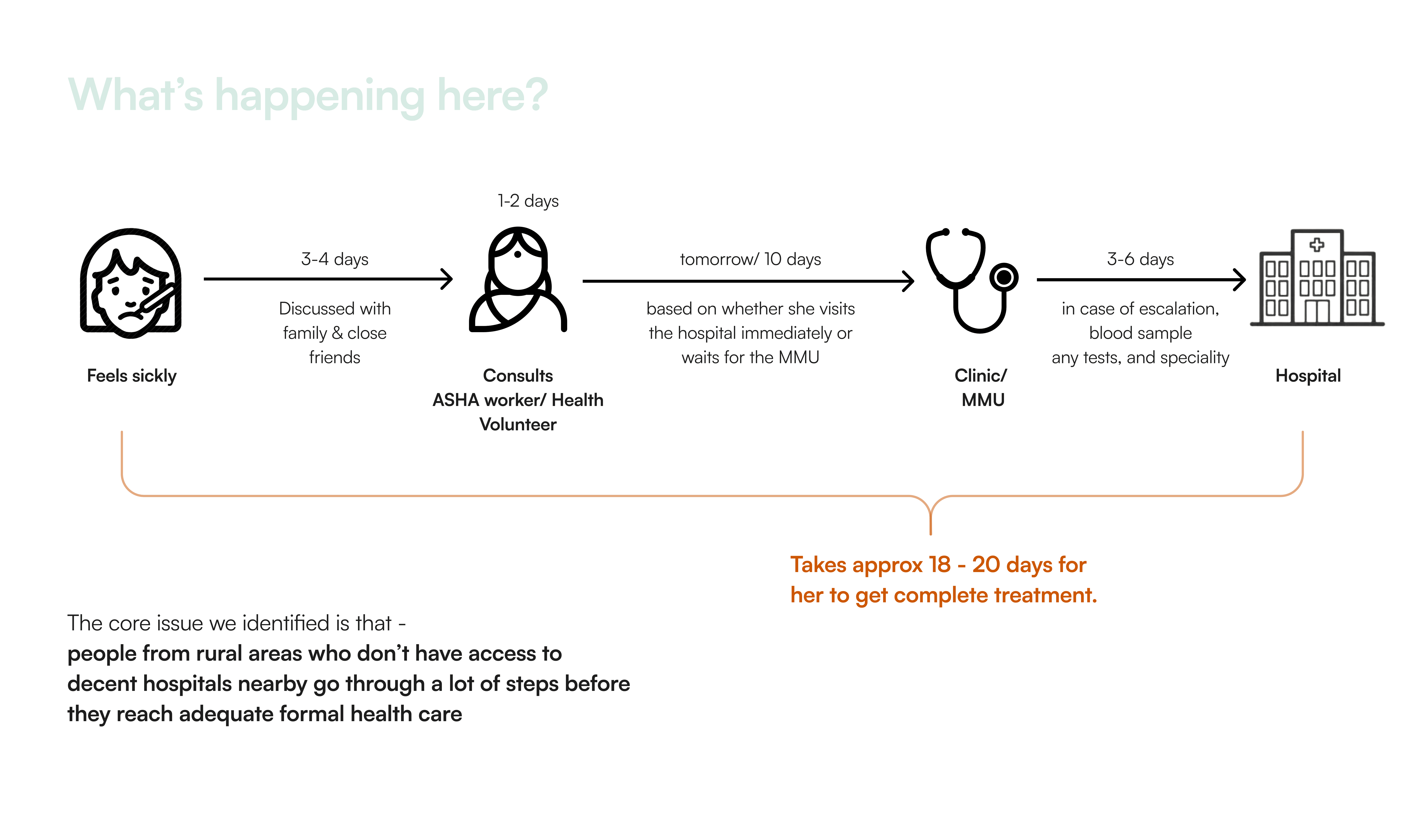 Aaranya Care is a service design project to strengthen rural primary healthcare in remote India by integrating telemedicine, ASHA workers, and mobile medical units into one seamless, patient-centred journey. Through field research, stakeholder mapping, and scenario modelling, we designed a holistic framework that improves access, follow-up, and support for short-term illnesses, making care more transparent, coordinated, and empathetic for rural communities.
